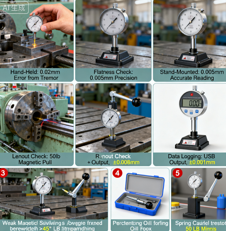 - Mistake: A 30-lb magnetic base can’t hold a heavy digital indicator—base slips, ruining readings.
