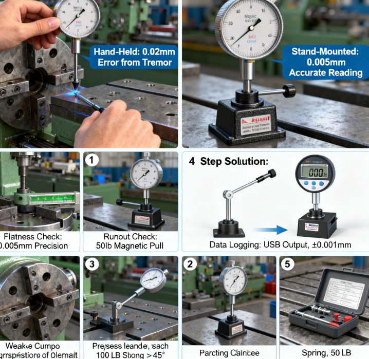 Imagine this: You’re checking a lathe chuck’s runout with a high-precision lever dial indicator—but you’re holding the indicator by hand. Your fingers twitch slightly, and the needle jumps 0.02mm. You misinterpret the reading, adjust the chuck incorrectly, and end up machining an oval part that’s useless. A $20 stand could have prevented a $500 mistake.