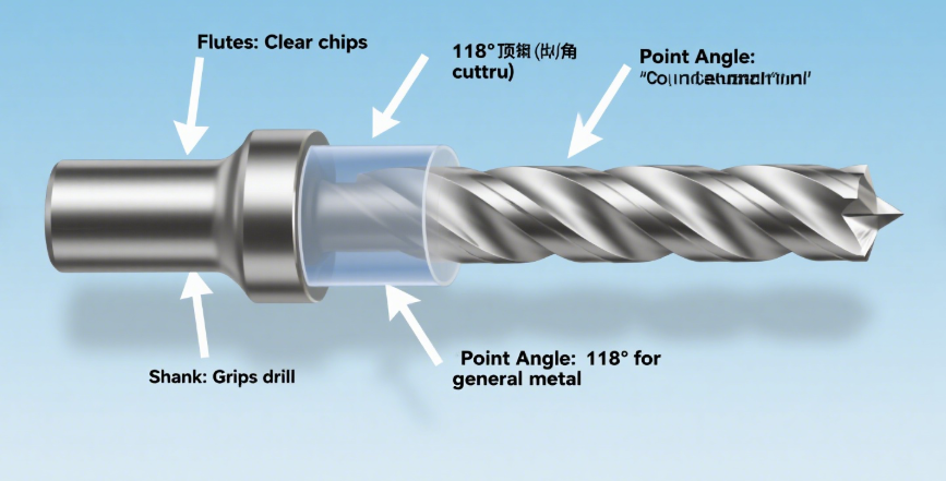 - Flutes: These spiral grooves aren’t just for looks—they channel chips away, preventing jams and overheating. Twist drills (the most common type) typically have 2 flutes, but some specialty bits (like those for stainless steel) use 3 or 4 for better chip control.
