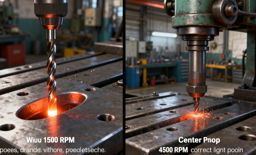 “Speed” = drill RPM; “Feed” = how hard you push the drill. Too fast = overheating; too slow = slow drilling. Use this cheat sheet: