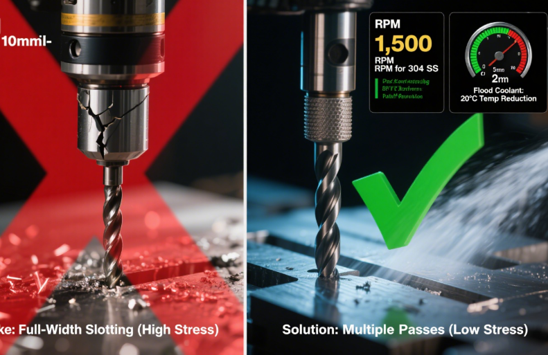 - Never dry-machine stainless steel or titanium—heat will shatter carbide end mills.