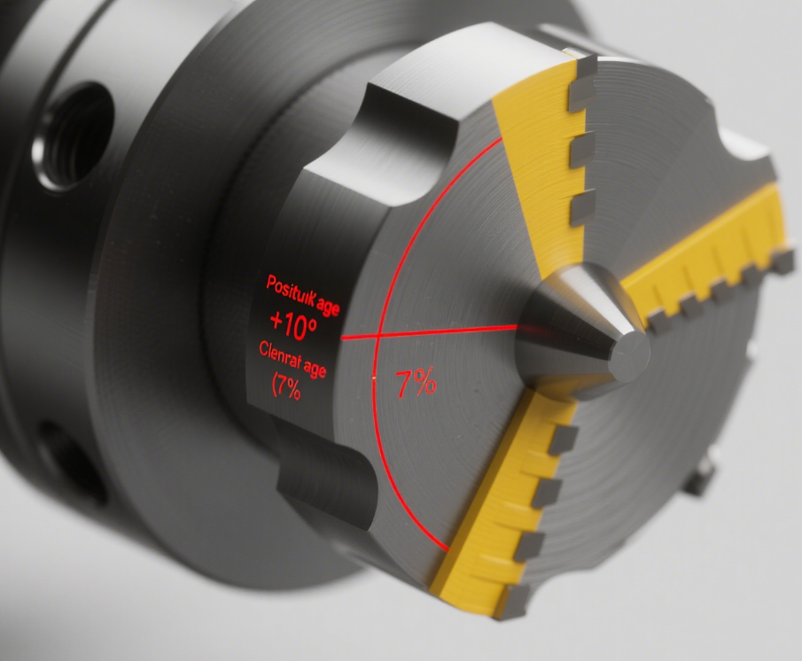 The cutting edge geometry, including rake angle and clearance angle, affects the cutting force, tool life, and surface quality. A positive rake angle reduces cutting forces, making it suitable for machining soft materials like aluminum. A negative rake angle provides more strength to the cutting edge, ideal for hard materials and heavy cutting.
