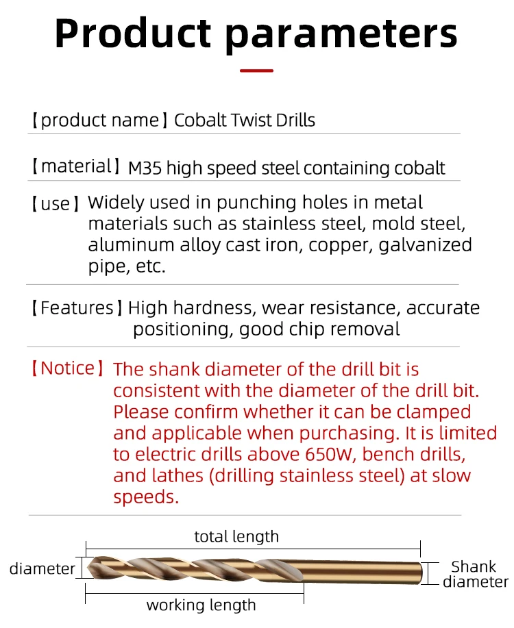 Product name | HSS M35 Cobalt Jobber Twist Drill Bit with Parallel Shank |