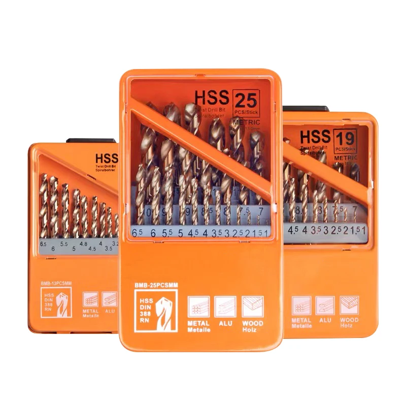13/19/25 PCS Twist Drill Bit Set HSS M35 Cobalt Drill Bit Set for Stainless Steel