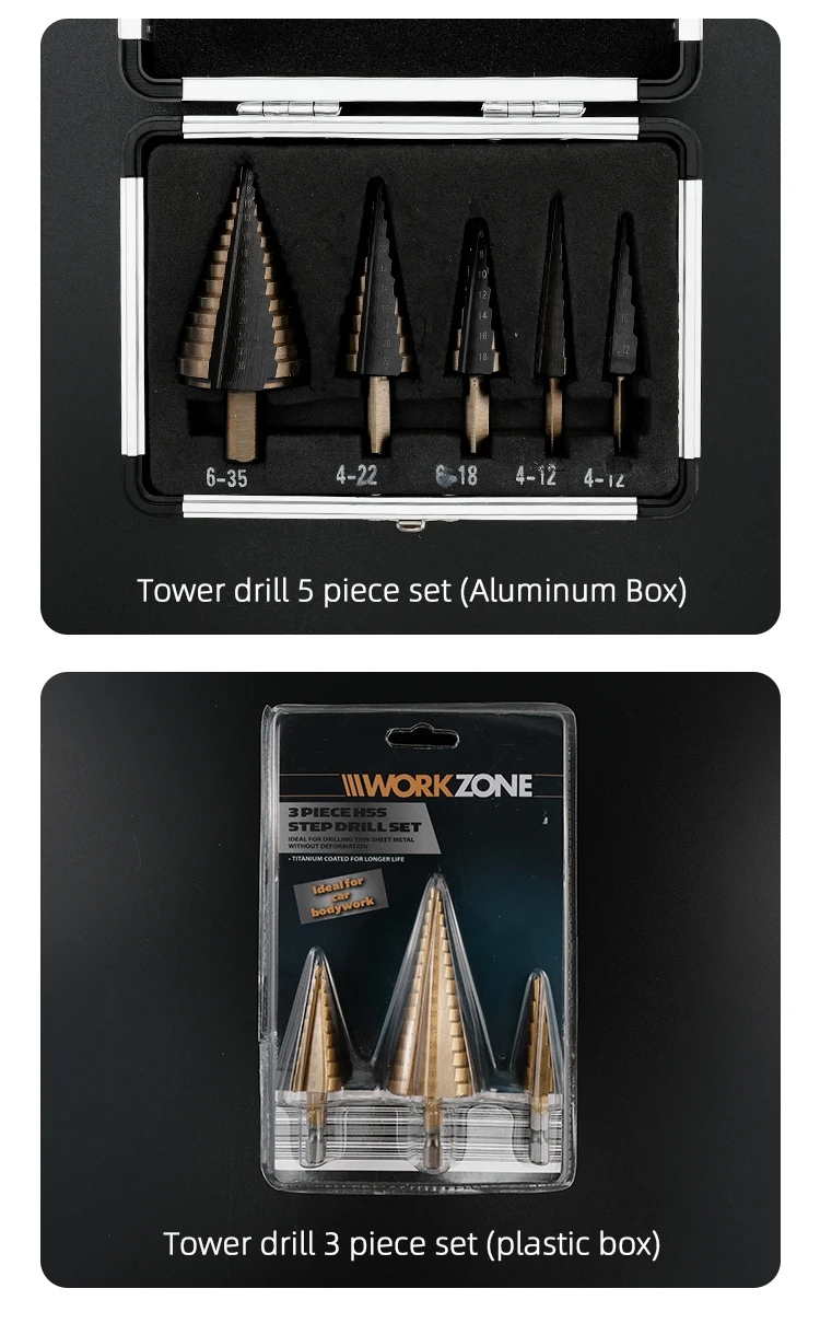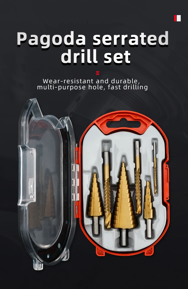 成为第一个“3/5/6PCS Step Drill Bits Set Hole Saw Cutting Metal Tapered Pagoda Milling Cutter 4-12mm 4-20mm 4-32mm HSS Triangular Shank” 的评价者