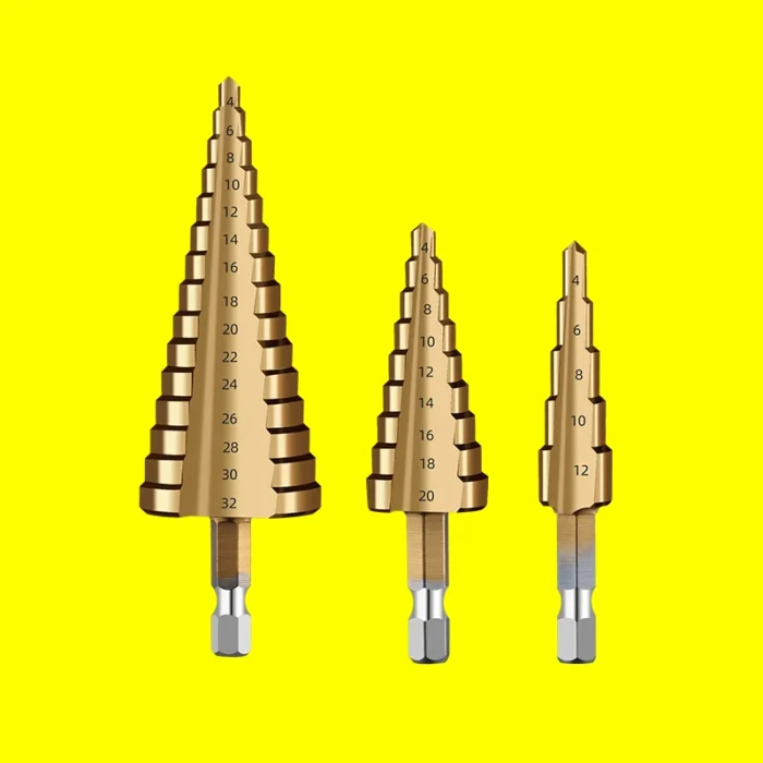 3/5/6PCS Step Drill Bits Set Hole Saw Cutting Metal Tapered Pagoda Milling Cutter 4-12mm 4-20mm 4-32mm HSS Triangular Shank