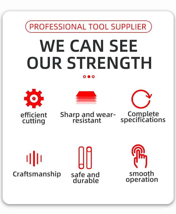 Our company is located in Zhejiang Province’s largest trading center for quantity and cutting tools, mainly engaged in wholesale and retail trade services, in line with the “integrity-based, win-win cooperation” business philosophy, has more than 20 years of trade experience. We have our own exclusive manufacturing plant, which can support non-standard customization. We have a large stock, product categories complete specifications, committed to provide one-stop sourcing services.