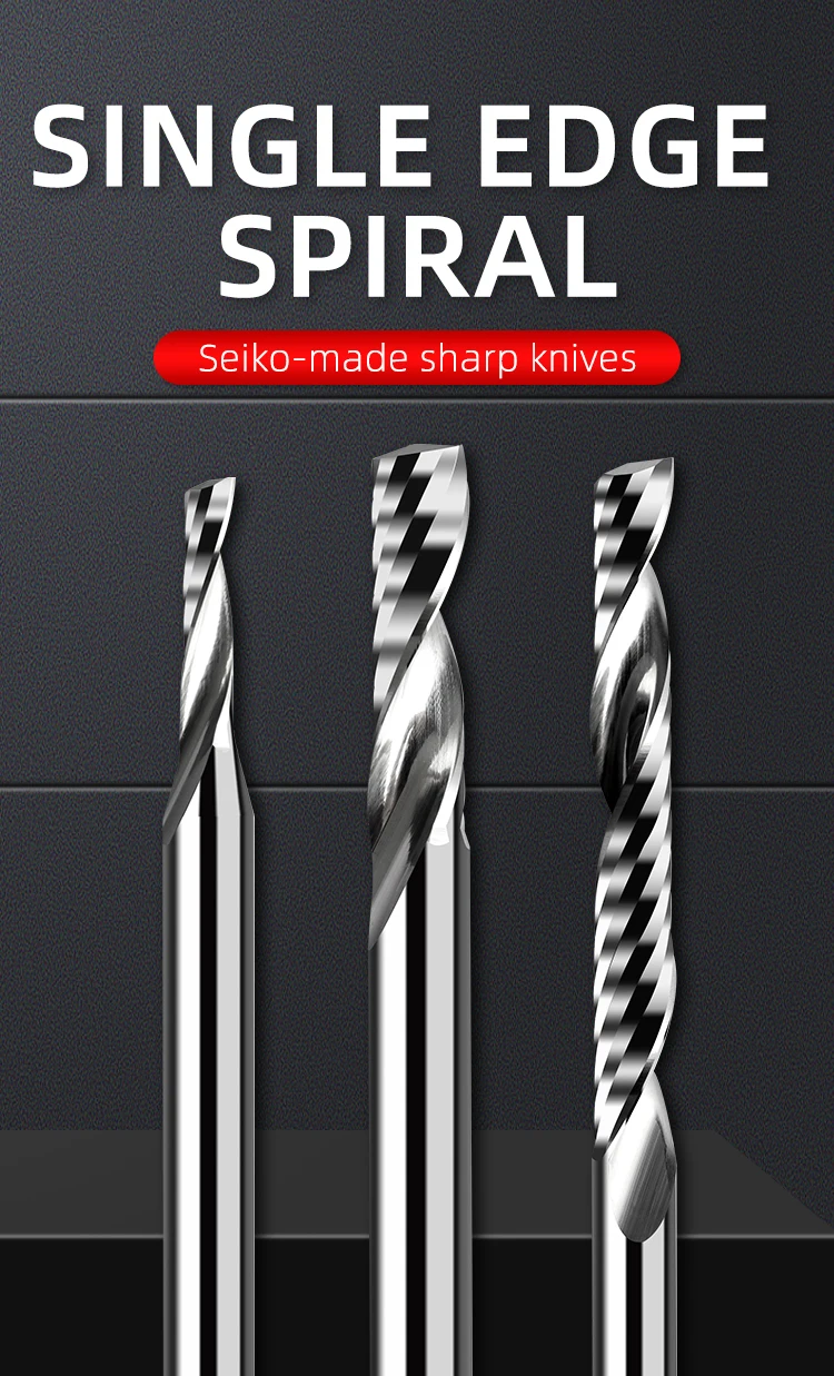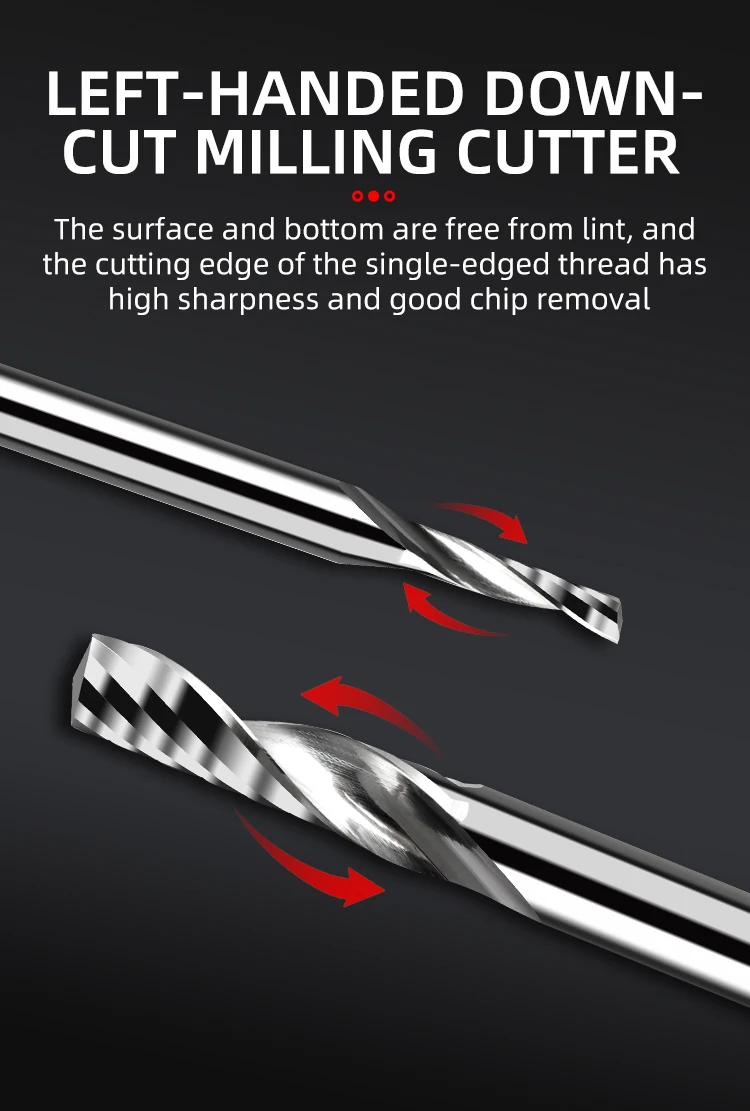 Acrylic PVC Density Board Woodworking Single-edge Left-turn Spiral Engraving Down Milling Cutter for Cnc Router