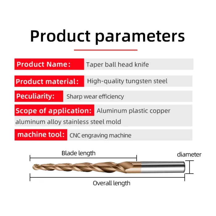 Arestun High Quality Tungsten CNC Milling Cutter Carbide Router Bits End Mill Taper Ball Nose for Wood CNC Cutting Tools Endmill