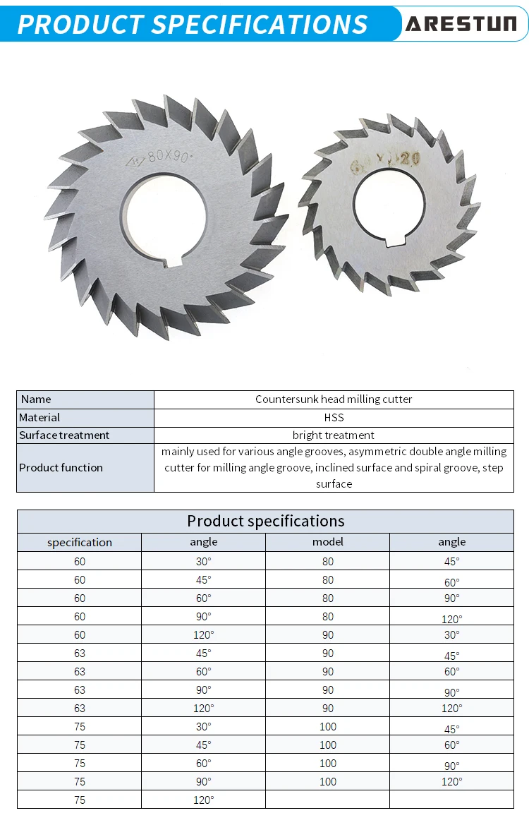 High Speed Steel Cutter Tools Double Angle Milling Cutter HSS Diameter 75-90 Degree