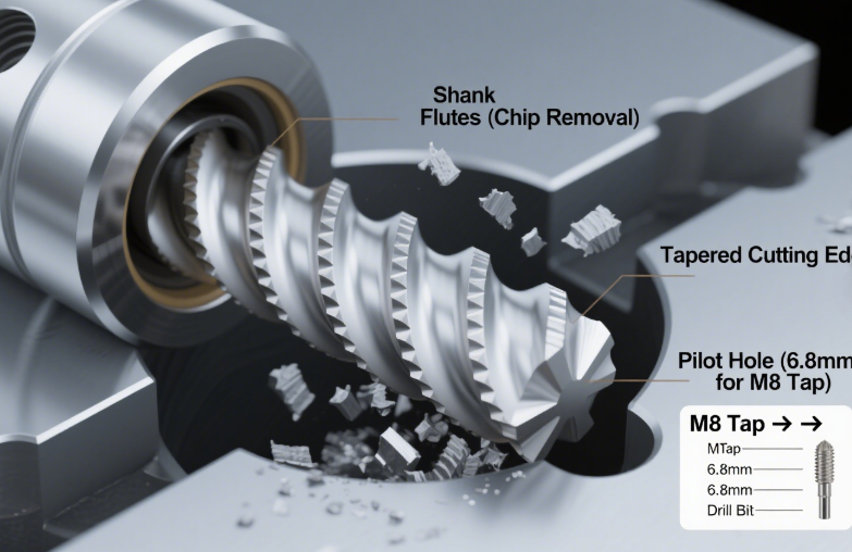 As we’ve previously explored in detail, a tap is a cylindrical tool equipped with spiral – shaped cutting edges known as flutes. Its hardened steel body is designed to be rotated into a pre – drilled hole. The flutes slice through the material, creating grooves that match the specific pitch and size of the desired internal thread, such as M8x1.25 metric threads or ¼”-20 UNC imperial threads.