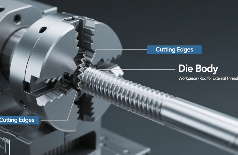 A die is a tool used to cut external threads on cylindrical workpieces, such as rods or pipes. It is essentially a circular or hexagonal – shaped plate with a threaded hole in the center. The inner surface of the die has cutting edges that, when the die is rotated around the workpiece, cut the material to form the desired external thread.