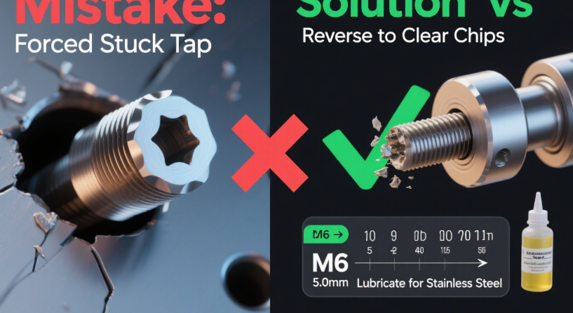 - Pre – Drill the Hole: Begin by drilling a “pilot hole” with a diameter slightly smaller than the tap’s major diameter. Consult a “tap drill size chart” to select the appropriate drill bit. For example, an M8 tap typically requires a 6.8mm drill bit.