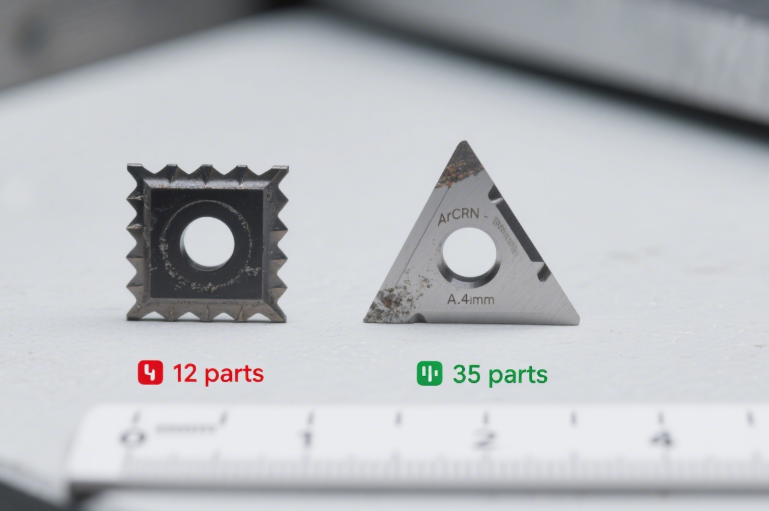 • Uncoated Carbide: Lasted 12 parts before flank wear hit 0.5mm (replacement threshold).​